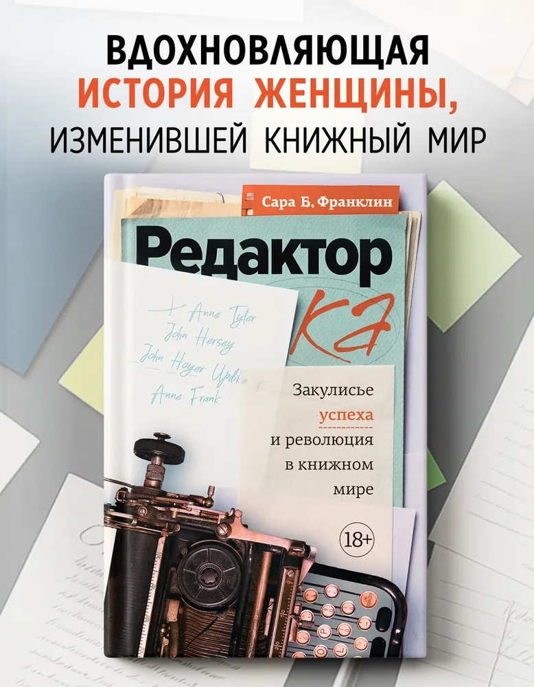 Как рождаются книги? От авторской задумки до публикации книгу ведет за собой редактор – важнейшая фигура в книгоиздании. Именно редакторы стоят за всеми великими писателями, выступая серыми кардиналами книжного мира. Однако добиться успеха в книжном бизнесе не так просто, особенно если вы – женщина, живущая в XX веке. Такой женщиной была Джудит Джонс, которая за 50 лет работы с книгами из-за кулис изменила облик литературы от Нью-Йорка до Парижа. Устроившись на работу в издательство, она не захотела довольствоваться привычной для женщин ролью секретарши. Обладая тонким литературным чутьем, она построила успешную карьеру в то время, когда книжным миром заправляли мужчины. Джон Апдайк, Энн Тайлер, Джон Херси – вот лишь немногие имена, с которыми Джудит Джонс познакомила читателей всего мира. Благодаря ее издательскому таланту читатели открыли для себя меланхоличные и предельно откровенные стихи Сильвии Плат, пронзительный дневник Анны Франк о жизни под нацистской оккупацией, а также кулинарные книги Джулии Чайлд, известной по фильму с Мэрил Стрип в главной роли. Это вдохновляющая история влюбленной в книги женщины, которая проигнорировала общественные ожидания, последовав за своей мечтой. Историк Сара Франклин показывает долгий путь Джудит от простой ассистентки до главного редактора, полный взлетов и падений, встреч и расставаний, но самое главное – надежды.
